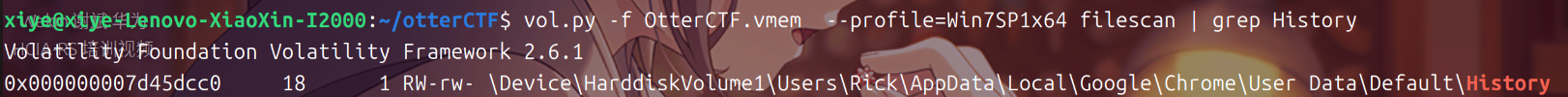 vol.py -f OtterCTF.vmem --profile=Win7SP1x64 filescan | grep History